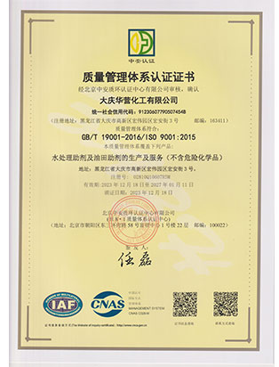 大慶華營(yíng)化工有限公司成立于2006年7月10日,注冊(cè)資金3300萬(wàn)元,公司類型為有限責(zé)任公司。位于大慶高新技術(shù)產(chǎn)業(yè)開(kāi)發(fā)區(qū)宏偉園區(qū),是一家集油田助劑產(chǎn)品的研發(fā)、生產(chǎn)、銷售和技術(shù)服務(wù)為一體的現(xiàn)代化高新技術(shù)企業(yè)。公司注重科技創(chuàng)新,公司擁有18項(xiàng)自主知識(shí)產(chǎn)權(quán)。企業(yè)承擔(dān)過(guò)國(guó)家火炬計(jì)劃重點(diǎn)項(xiàng)目、國(guó)家科技型中小企業(yè)創(chuàng)新項(xiàng)目等,2011年被科技部火炬高新技術(shù)產(chǎn)業(yè)開(kāi)發(fā)中心評(píng)為國(guó)家火炬計(jì)劃重點(diǎn)高新技術(shù)企業(yè)。公司十余種產(chǎn)品獲得中國(guó)石油天然氣集團(tuán)公司產(chǎn)品質(zhì)量認(rèn)可證書,其中粘穩(wěn)型驅(qū)油劑獲國(guó)家火炬計(jì)劃重點(diǎn)項(xiàng)目證書。公司憑借多年對(duì)大慶油田及周邊油田地質(zhì)情況的研究,可針對(duì)各油田地層特點(diǎn)調(diào)整產(chǎn)品的配方,更好地發(fā)揮各類油田助劑的性能。
